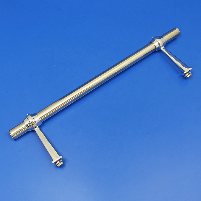 19mm diameter stainless steel bar, 22" (560mm) long bar - chrome plated mounting posts with rubber spacer pads. Plug ends of tube can be removed so the bar can be cut shorter if required. Posts have mounting stud in base and can be fitted at any position along the tube. Please order required number of badge bar clips separately. --