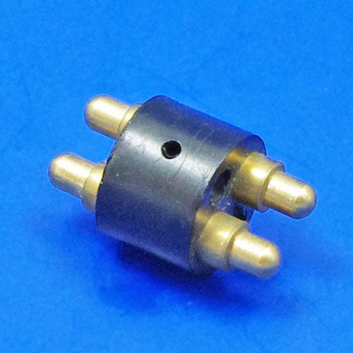 Double contact, double ended SBC/BA15D bulb holder insert. Four spring loaded brass contacts allow it to be adapted for various applications. Overall length 27mm, insulator 11mm long x 15.6mm diameter.