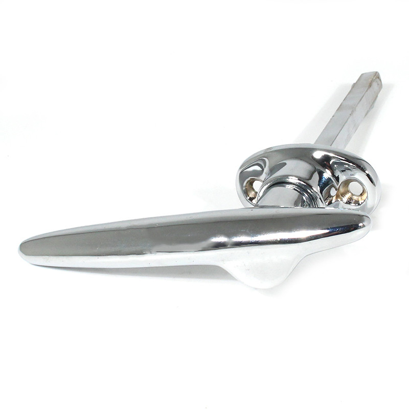 Chromium finish handle 132mm long. Fitted with special heart-shaped escutcheon, with mounting holes at 36mm centres. As fitted to MGTF, Morris Series E etc.