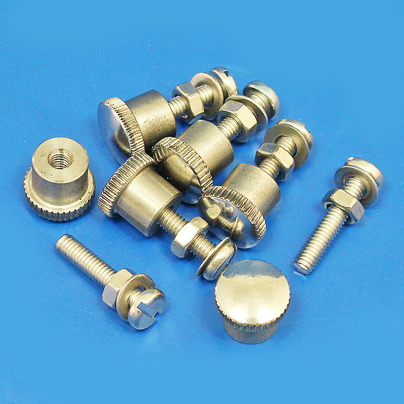Set of six stainless steel nuts, with knurled top section and polished dome top. Threaded M4, supplied with six M4 slotted pan head 20mm long bolts with washers and plain nuts. Used to fit many original stone guards including the Vintage Supplies CA807, CA808, CA809, CA810, CA812 range of stoneguards.