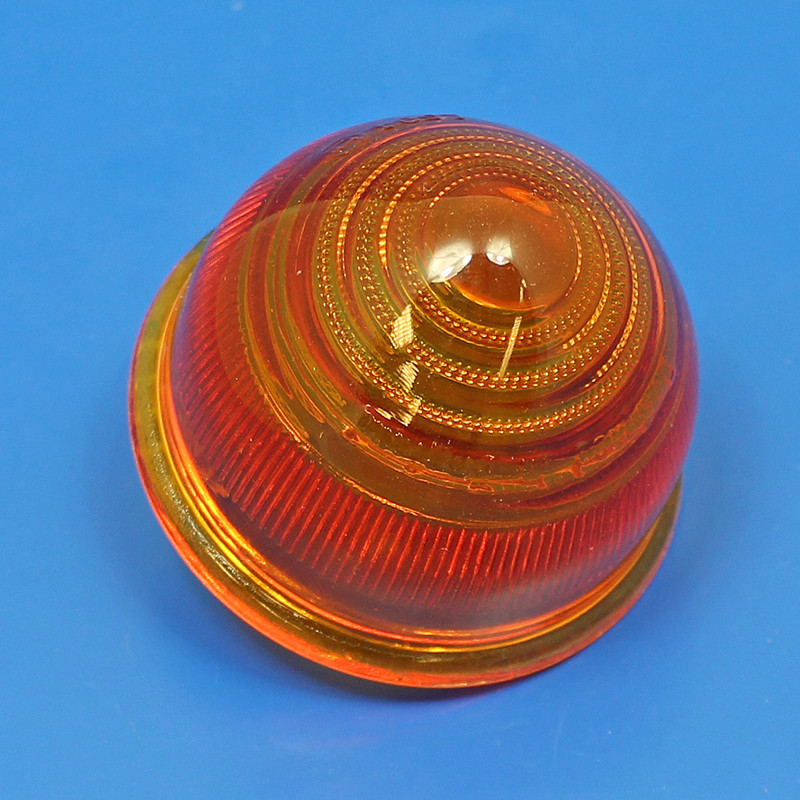 Amber glass lens for 299 part number series (equivalent to Lucas L594) type indicator lamps.