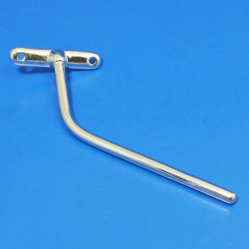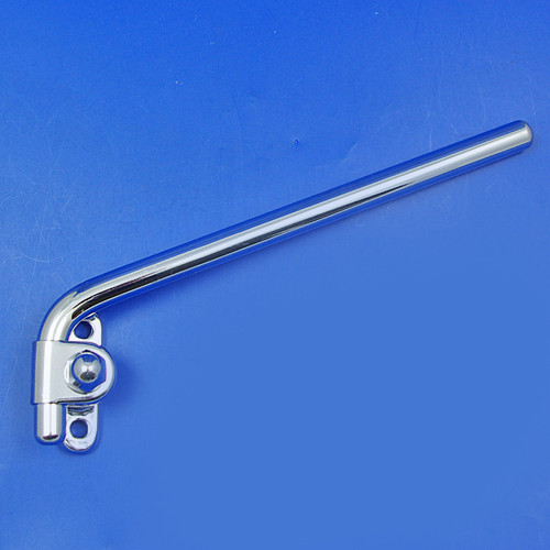 Non-adjustable cranked rod mirror arm, available in chrome or nickel plated finish - please make your selection from the option box. Arm base dimensions 96mm x 21mm with two approx. 6mm diameter mounting holes with 75mm between centres. 7/16" (11mm) diameter rod approx. 150mm long. Offered for LEFT or RIGHT side fitting. Please note that style may vary from illustration. Lost wax cast bronze base with solid brass rod.