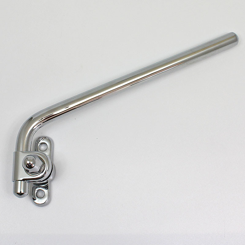 Non-adjustable cranked rod mirror arm, available in chrome or nickel plated finish - please make your selection from the option box. Arm base dimensions 96mm x 21mm with two approx. 6mm diameter mounting holes with 75mm between centres. 7/16" (11mm) diameter rod approx. 150mm long. Offered for LEFT or RIGHT side fitting. Please note that style may vary from illustration. Lost wax cast bronze base with solid brass rod. -- left side fitting