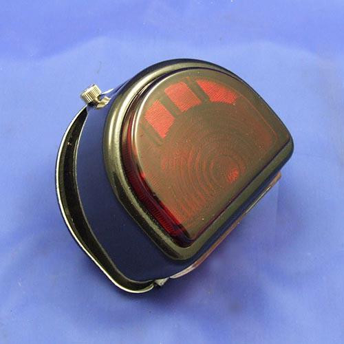 'D' Lamp with full red glass lens, equivalent to the Lucas ST51 type lamp. Fitted with double contact bulbholder (for stop and tail lamps). Body 87mm wide x 75mm tall x 54mm deep, backing base plate 95mm wide x 84mm tall. Clear side number plate illumination lens. Black coated finish. Uses a BAY15D bulb. For bulbs, please see our B384 (6v) or B380 (12v).