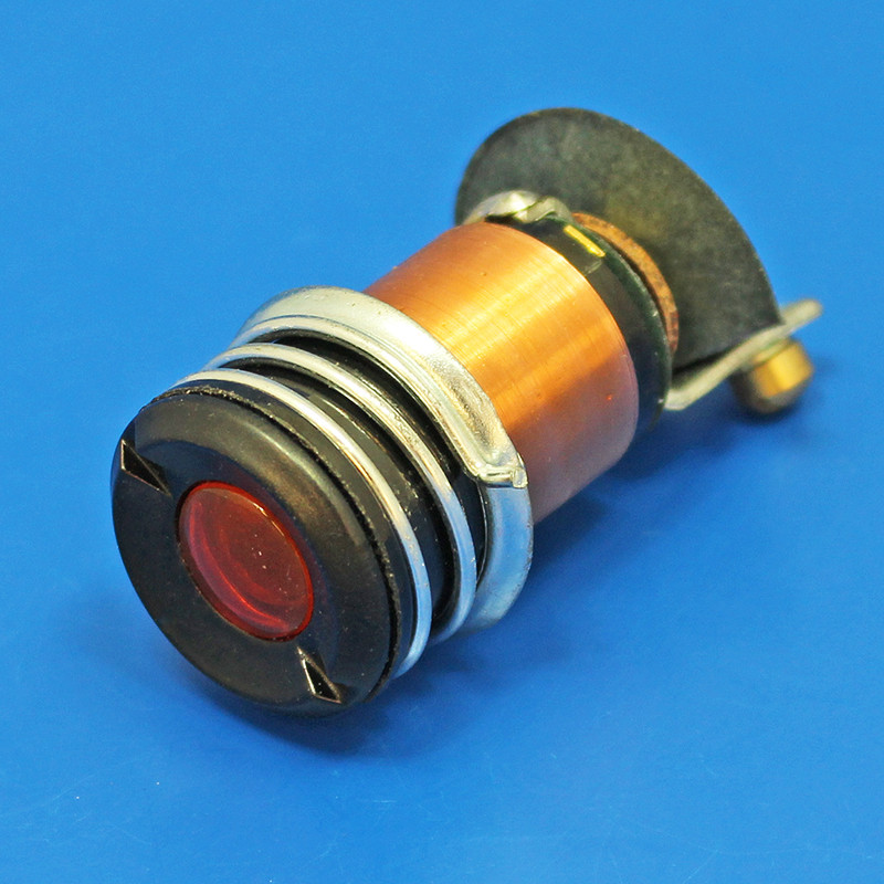 Ignition warning lamp equivalent to the Lucas WL3 type, powder coated black on brass (slotted) screw bezel, black plastic body fits through dash (19mm hole). Please note that these lamps may have wire outer windings - these are for aesthetic purposes only, they are not functional.