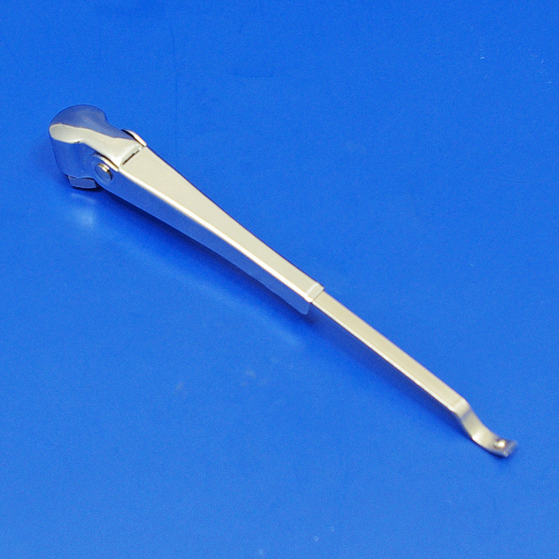 Stainless steel adjustable wiper arm for 1/4" diameter wiper motor shafts. This arm has a strong sping to pull the blade on to the glass. Offered with three attachment options - for slot, bayonet or wrist end type blade fittings. Adjusts from very short (approx 130mm long) to a maximum of 270mm.