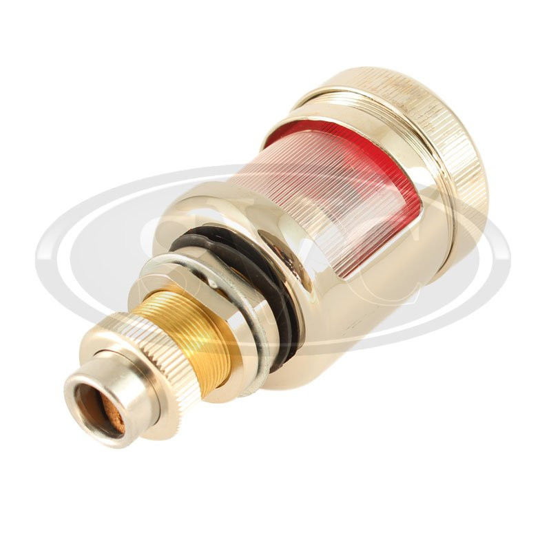 Early pattern cylindrical rear lamp equivalent to Lucas type 582. With side number plate illumination in stop and tail lamp configuration, when fitted with a red glass prismatic lens. Without side number plate illumination in indicator configuration, when fitted with an amber glass lens. Screw on metal rim. 45mm diameter x 93mm overall, body 42mm diameter. BA15D double contact equal pin bulb holder. Mounts through a 20mm panel hole. Offered in black or nickel or chrome plated finish. For spare stop and tail bulbs please see B381 (12V) and B383 (6V), or LED equivalents designed for these lamps CSTLEDWWR-6 and CSTLEDWWR-12. For spare indicator bulbs please see our B319 (6v) or B335 (12V).
