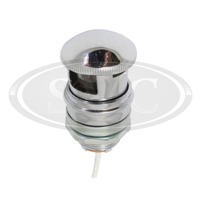 Chrome top dash lamp, panel fixing through 19mm hole. Basic switch incorporated into twist cap. Maximum diameter 30mm, height from panel approx 40mm. Uses a BA15S bulb, for spare bulbs please see our B205 (6v) of B207 (12v).
