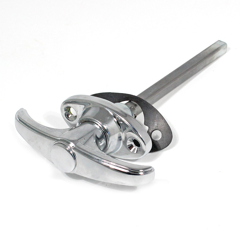 'T' boot handle approx 95mm long, escutcheon hole centres 44mm, chrome plated.