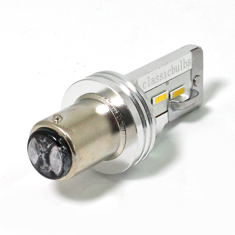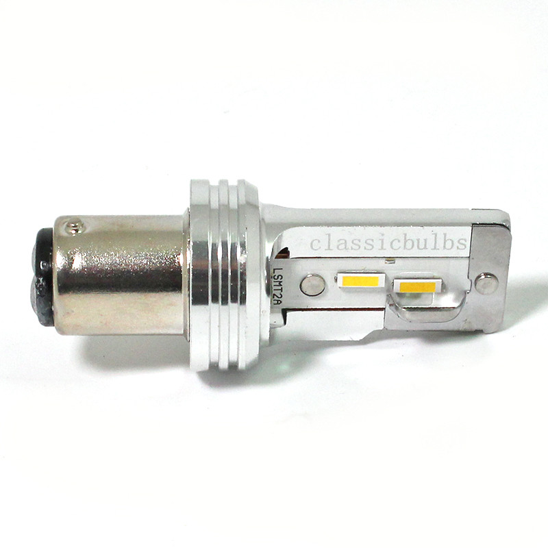 In testing, this LED lamp produced a great high and low beam pattern with Lucas 'U' flute style lenses in particular and is the recommended BA15D 'no integral lens' LED lamp upgrade for early headlamps fitted with these lenses, with or without a Bi-flex bar. For 'Difusa' style lenses, we recommend the BA15DLED-H43 style LED, which imitates a twin (unshielded) filament bulb, or BA15DLED-H43L with the integral lens that produces great light output - regardless of reflector condition - and an excellent, defined dipping pattern