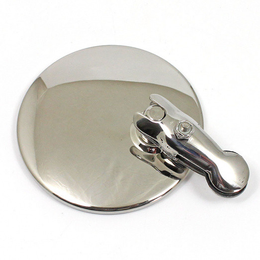 Circular clip on mirror - diameter 90mm. Available in polished brass or stainless steel finish
