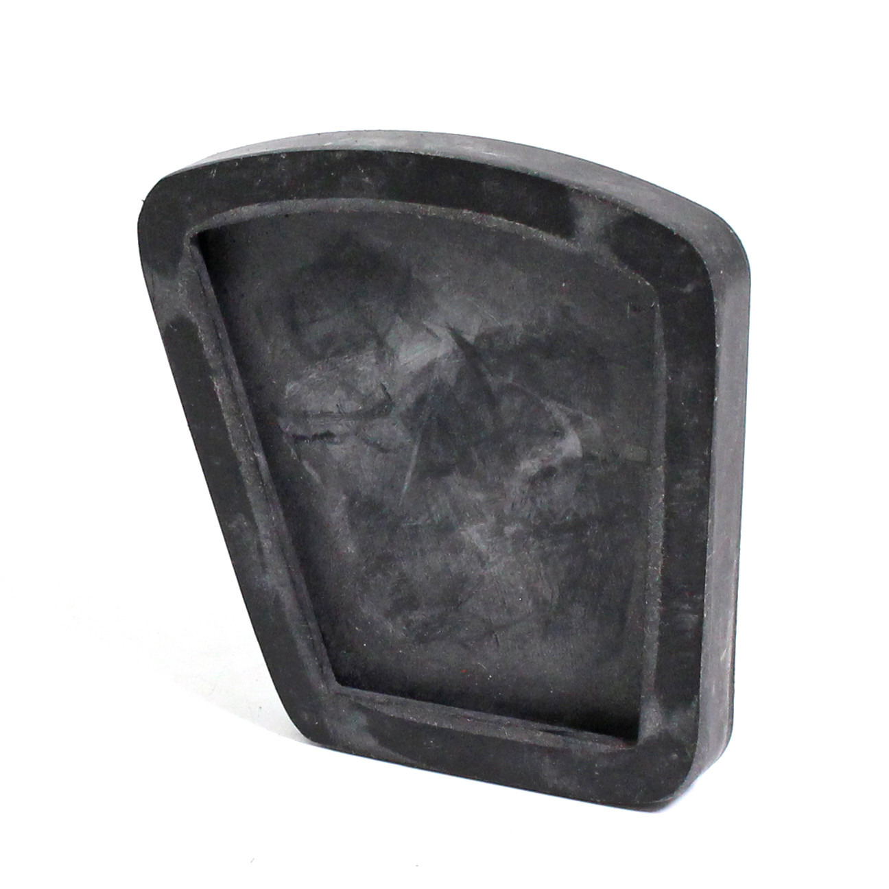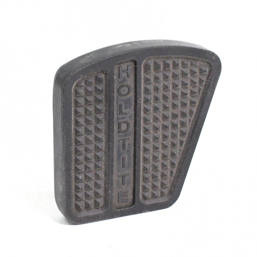 Pedal Rubber. Equivalent to original Holdtite pattern No.100. Square shape. Handed. Internal recess for pedal vertical and top dimensions 2 3/8" x 2 3/8". Corner cut off to leave 1 5/8" across bottom. Overall size 2 5/8" by 2 5/8", 1 7/8" across bottom. Aperture 2 1/8" x 2 3/16", 1 1/2" across bottom. Original applications - Ford
