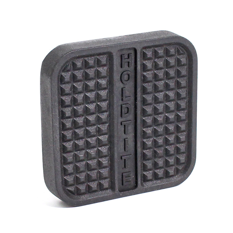 Clutch and Brake Pedal Rubber. Equivalent to original Holdtite pattern No.26. Square shape. Internal recess for pedal size 2 1/2 x 2 1/2". Overall size 2 3/4" x 2 3/4". Aperture 1 7/8" x 1 7/8". Original applications include - Bedford, Ford, Morgan, Vauxhall.