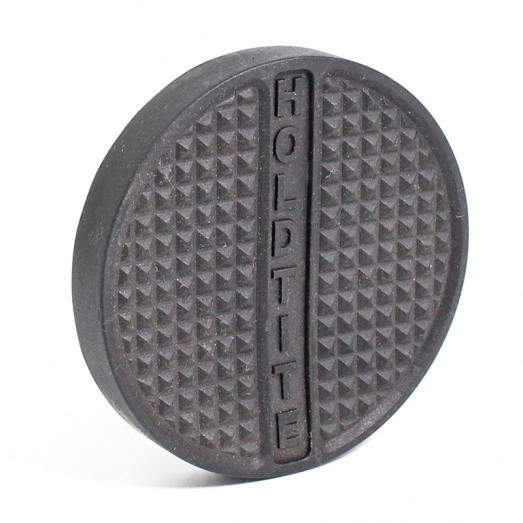 Clutch and Brake Pedal Rubber. Equivalent to original Holdtite pattern No.73. Round shape. Internal recess for pedal size 3" diameter. Overall size 3 5/16" diameter. Aperture 2 3/8". Original applications - Austin, Wolseley, Allard