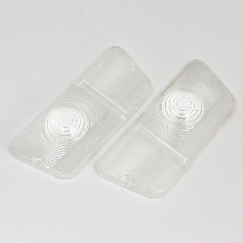 Moulded plastic lenses equivalent to Lucas type L792 clear front indicator / side light lenses. Used on all the Hillman Imp range and derivatives, also on rally prepared Ford Escort models. Sold as a Pair (one left lens one right lens)
