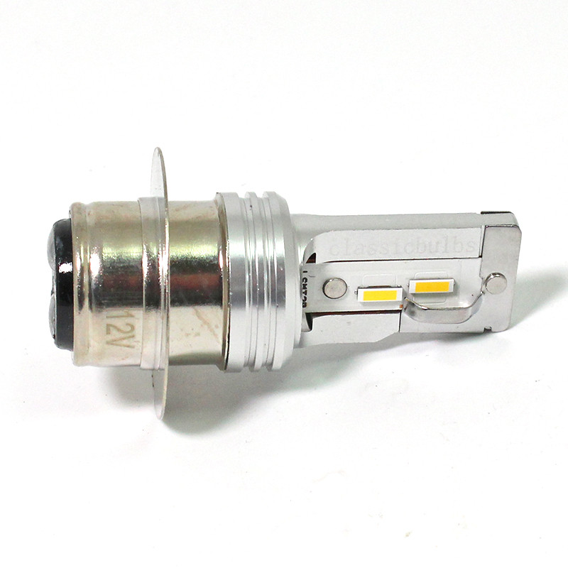 These bulbs don't have an integral lens so can be used in tripod type lamps. Please see part number P36DLED-P43 for a 12V, negative or positive earth version. Please see part numbers P36DLED-S30-6P and P36DLED-S30-6N for 6V British Pre-focus headlamp bulbs with twin transverse filaments without filament shields. And P36DLED-H30L and P36D0LED-H43L for warm and bright white LED upgrade lamps with integral lenses. 77mm total bulb height. 20mm diameter cap.